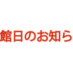 - 休館日のお知らせ下記の日程を休館日とさせていただきます。ご不便をお掛けいたしますが、ご了承の程、よろしくお願いいたします。10… 続きを読む: 休館日のお知らせ