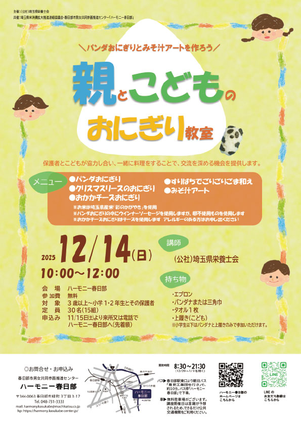 親とこどものおにぎり教室~パンダおにぎりとみそ汁アートを作ろう~